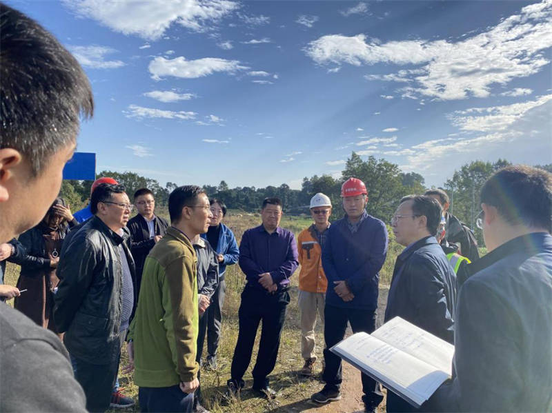 鄒瑾一行先后實(shí)地踏勘全線(xiàn)三個(gè)標(biāo)段的施工現(xiàn)場(chǎng),對(duì)照規(guī)劃圖紙了解施工進(jìn)展情況。