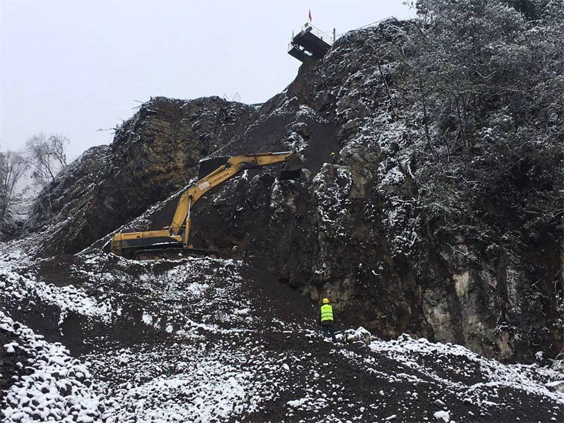 目前,廠區(qū)共8輛車在運(yùn)行施工,主要用施工材料運(yùn)輸,啟動(dòng)3臺(tái)挖機(jī)進(jìn)行礦山防護(hù)網(wǎng)安裝,初步完成安裝礦山防護(hù)網(wǎng)的前期準(zhǔn)備工作。2月15日,舉行復(fù)工儀式,天全縣相關(guān)部門對(duì)項(xiàng)目進(jìn)行復(fù)工資料驗(yàn)收檢查,已具備開工條件。丹石公司員工正迎著風(fēng)雪在大山上加緊施工,確保魚泉獅子山礦山開采項(xiàng)目能夠盡快完工。