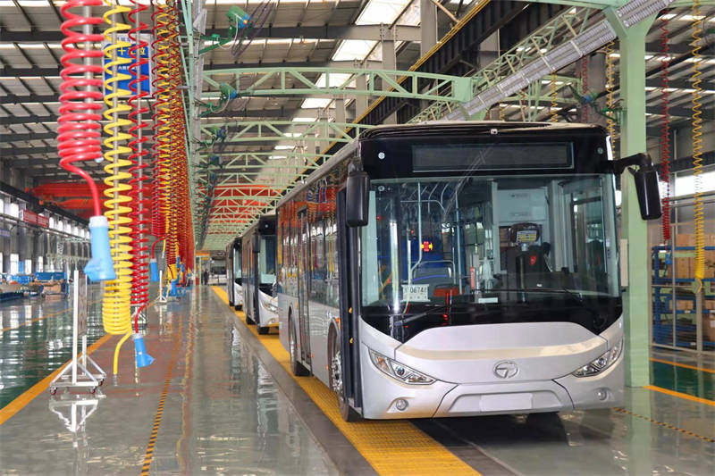 組裝部件、調試設備,5月15日上午,位于雅安經開區(qū)的四川新筑通工汽車有限公司(下稱:新筑通工)新能源汽車總裝生產線一派繁忙,技術人員正對已下線的氫燃料公交車進行最后的聯調聯試,該批“雅安造”氫燃料新能源公交車,預計今年10月將投入雅安首條氫能公交示范線試運行, 綜合續(xù)航里程預計達到400公里。