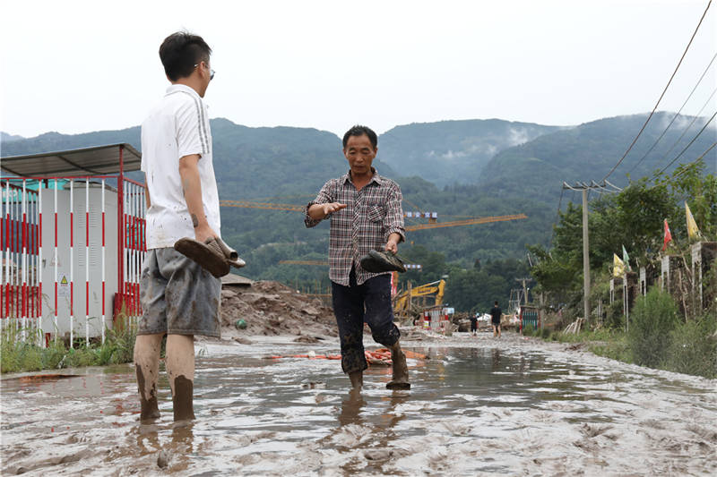 8月18日下午,在草壩青衣江大橋建設(shè)現(xiàn)場,項目部外的院壩、工地附近的道路,均覆蓋著厚厚的淤泥。“昨晚緊急撤離,我的車停在河邊,也沒來得及開走,現(xiàn)在都沒找到。”一臉疲憊的李勁松告訴記者,雖然洪水漲勢迅猛,但他們撤離之前,提前通知了電力部門斷電,否則若有人再次靠近洪水,將面臨觸電的風(fēng)險。