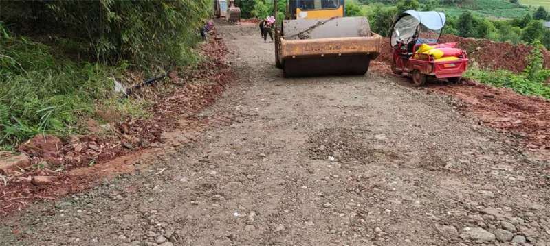 在路橋公司承接的“世界銀行貸款蘆山地震災(zāi)后恢復(fù)重建天全縣始陽至新華農(nóng)村公路”項目天全縣新華鄉(xiāng)柏樹村至永安村段,其村道路面結(jié)構(gòu)層差,路基窄,雨水多,晴通雨阻,對本地農(nóng)產(chǎn)品外運造成很大困擾,嚴(yán)重影響了民眾的生產(chǎn)生活。為積極響應(yīng)市委市政府加快雅安市“四好農(nóng)村路”的部署安排,解決當(dāng)?shù)卮迕癯鲂须y、本土農(nóng)產(chǎn)品外銷滯后等問題,路橋公司天全項目部主動作為,在推進項目部主體建設(shè)的同時,堅持以問題為導(dǎo)向,采用“始新路”施工現(xiàn)場自拌水穩(wěn)料,為村民鋪設(shè)了一段長臨時水穩(wěn)路面,方便廣大村民順利出行,促進當(dāng)?shù)剞r(nóng)產(chǎn)品物資交流。