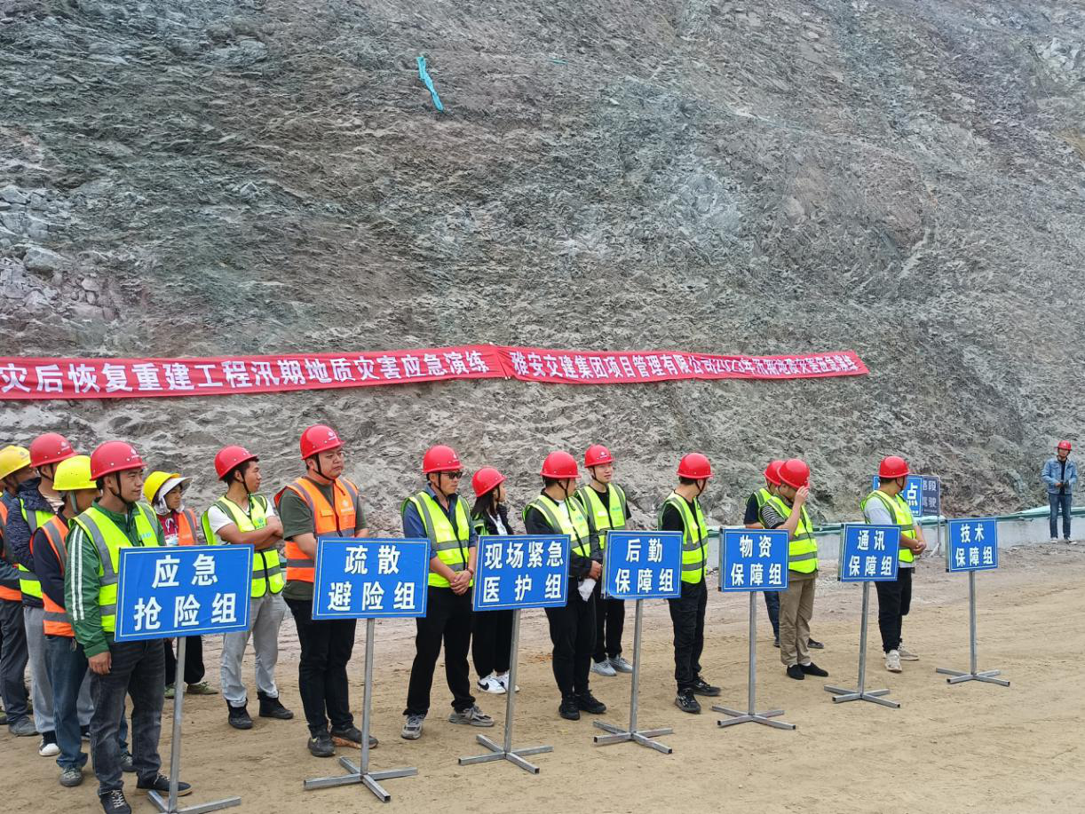 為貫徹落實防災減災工作要求,提高地質災害應急處治能力,驗證應急預案的可行性,5月26日,雅安交建集團項目管理有限公司組織石棉縣X066災后恢復重建項目各參建單位開展2023年汛期地質災害應急演練。