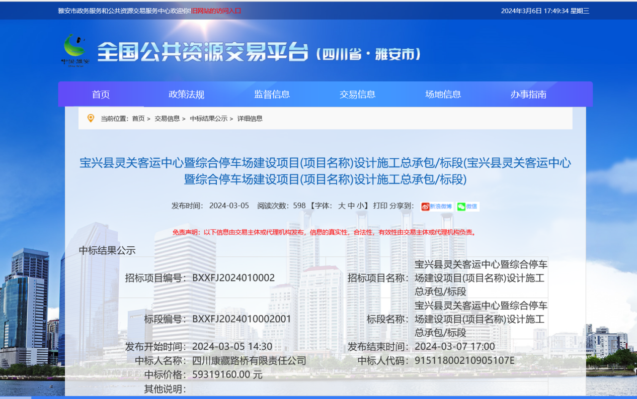 日前,雅安交建集團(tuán)康藏路橋公司中標(biāo)寶興縣靈關(guān)客運(yùn)中心暨綜合停車(chē)場(chǎng)建設(shè)項(xiàng)目,取得2024市場(chǎng)開(kāi)發(fā)“開(kāi)門(mén)紅”。