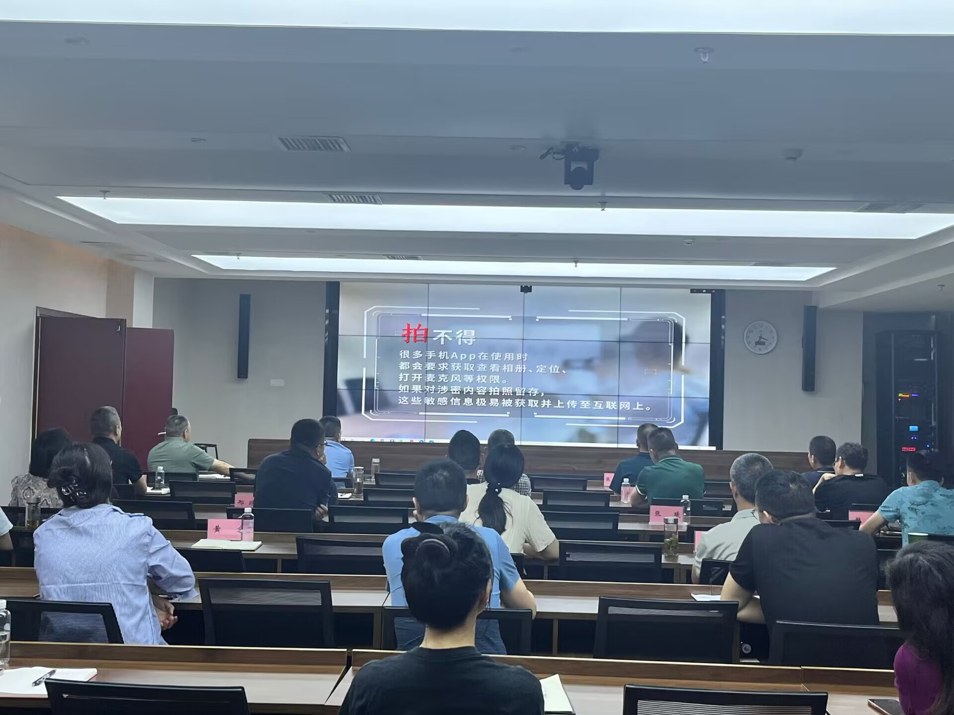 一是普及知識,營造氛圍。全體參與人員對新修訂頒布《中華人民共和國保守國家秘密法》的重要意義、精神實(shí)質(zhì)和主要內(nèi)容進(jìn)行了認(rèn)真學(xué)習(xí),深刻領(lǐng)會保守國家秘密的現(xiàn)實(shí)意義,營造了學(xué)法、守紀(jì)、保密的良好氛圍;二是以案釋法,樹立意識。集中觀看了《把好手機(jī)“保密關(guān)”》等保密宣傳教育片,用鮮活的案例,告誡大家要筑牢思想防線,樹立“國家秘密無小事”的保密意識,提高保密工作的責(zé)任感和使命感;三是交流互動,凝聚共識。在交流發(fā)言中大家紛紛表示,在今后的工作中要嚴(yán)守保密防線,強(qiáng)化保密意識,及時把學(xué)習(xí)成果轉(zhuǎn)化為抓牢保密工作的能力,嚴(yán)格遵守保密條例,堅決與危害國家安全的行為作斗爭,杜絕泄密現(xiàn)象發(fā)生。
