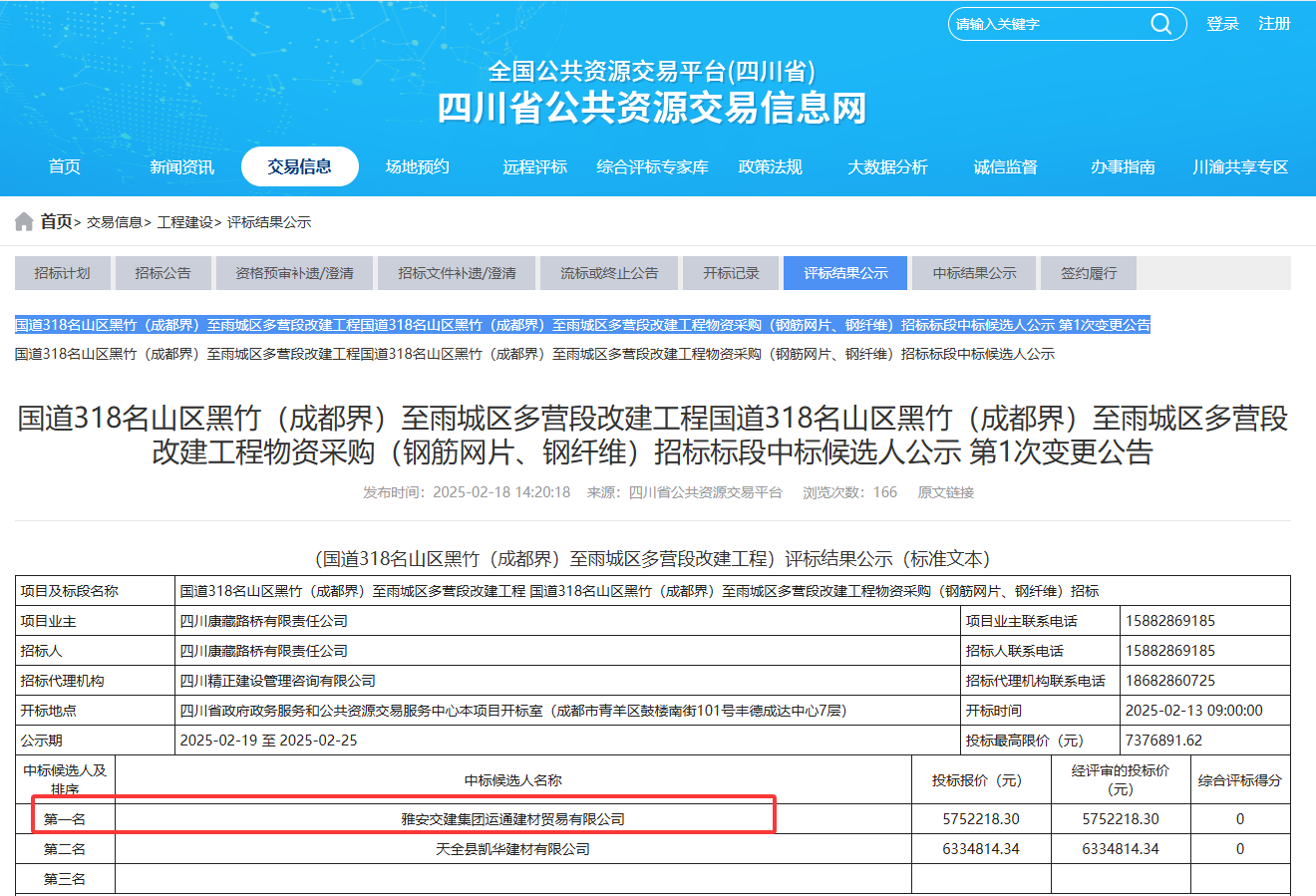 新年伊始,雅安交建集團建材公司憑借過硬實力和平臺企業(yè)優(yōu)勢,在重點基建項目招標中連獲突破,成功中標國道318名山區(qū)黑竹(成都界)至雨城區(qū)多營段改建工程兩大核心物資供應,合同總額突破2100萬元,為2025年度經(jīng)營目標達成奠定堅實基礎。