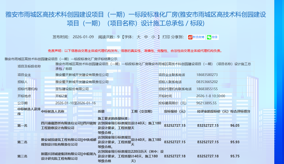 蓄勢突破,奮楫開新?挡芈窐蚬境晒孬@雅安市雨城區(qū)高技術(shù)科創(chuàng)園建設(shè)項目(一期)一標(biāo)段標(biāo)準(zhǔn)化廠房項目,中標(biāo)金額8325.27萬元,為公司2026年發(fā)展強(qiáng)勢開篇,迎來馬年“開門紅”。