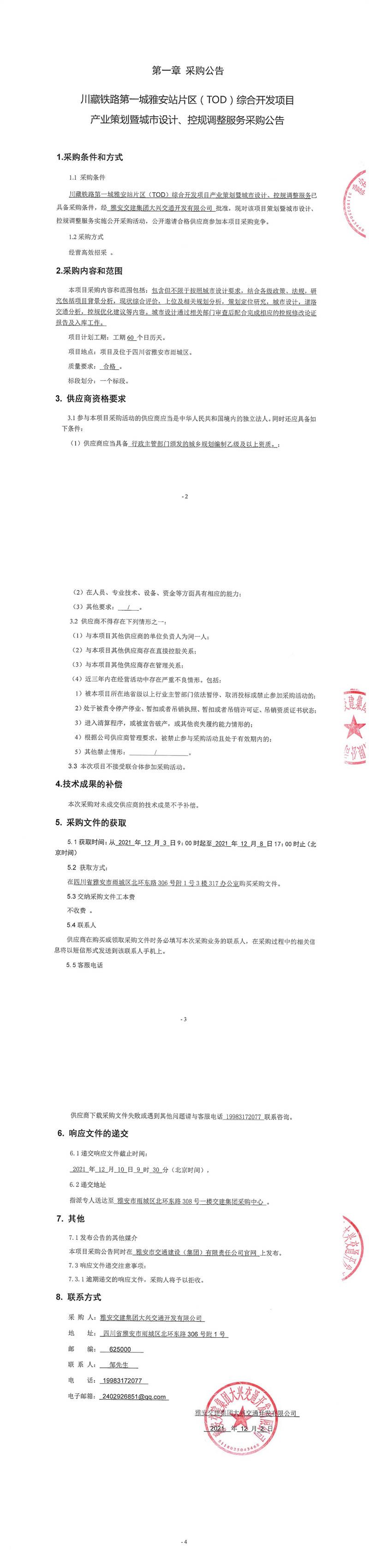 雅安交建集團(tuán)大興交通開發(fā)有限公司川藏鐵路第一城雅安站片區(qū)(TOD)綜合開發(fā)項目產(chǎn)業(yè)策劃暨城市設(shè)計、控規(guī)調(diào)整服務(wù)采購公告