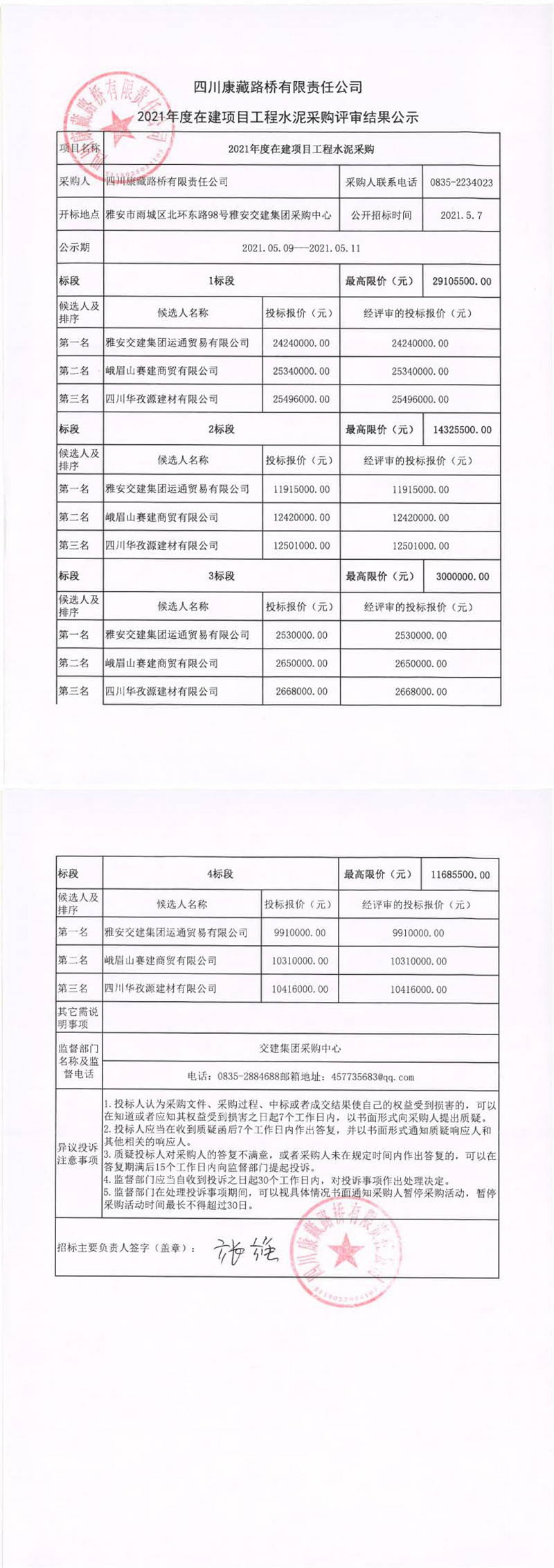 四川康藏路橋有限責(zé)任公司2021年度在建項(xiàng)目工程水泥采購評(píng)審結(jié)果公示