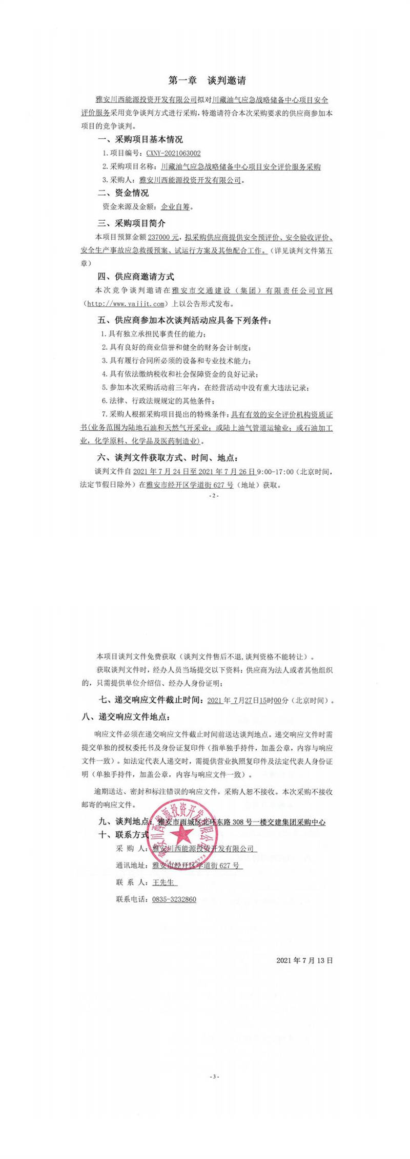 雅安川西能源投資開(kāi)發(fā)有限公司川藏油氣應(yīng)急戰(zhàn)略儲(chǔ)備中心項(xiàng)目安全評(píng)價(jià)服務(wù)采購(gòu)競(jìng)爭(zhēng)談判公告