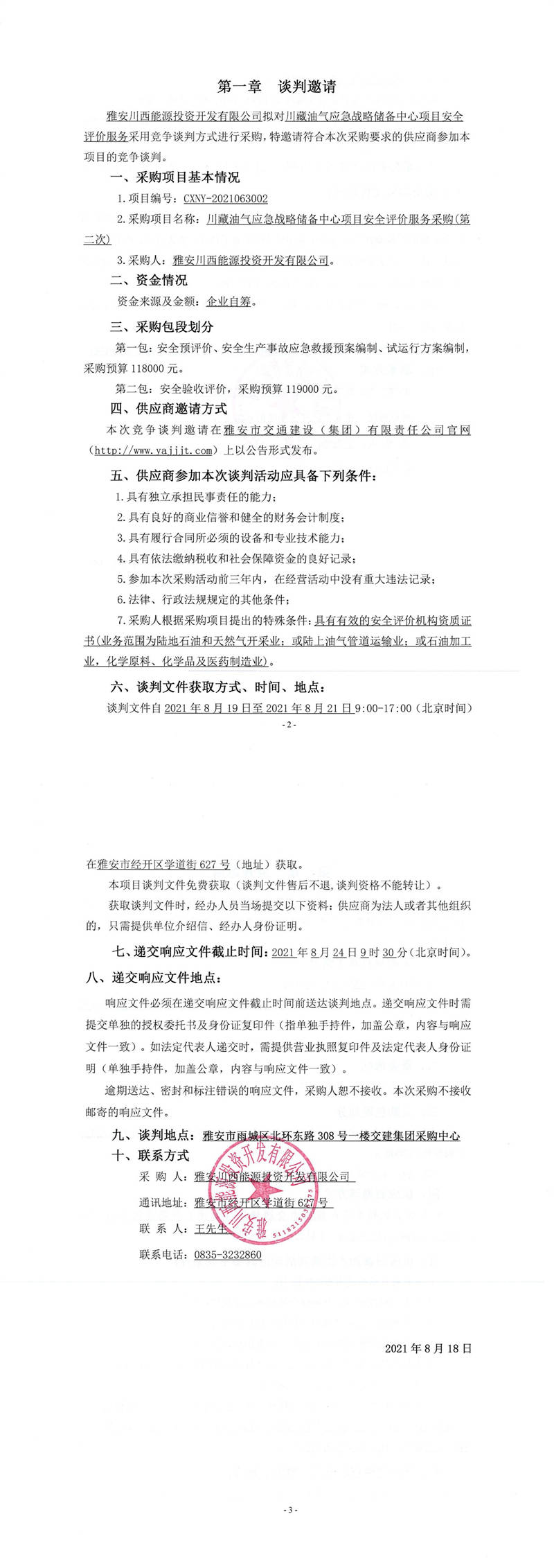 雅安川西能源投資開發(fā)有限公司川藏油氣應(yīng)急戰(zhàn)略儲備中心項(xiàng)目安全評價(jià)服務(wù)采購(第二次)競爭談判公告