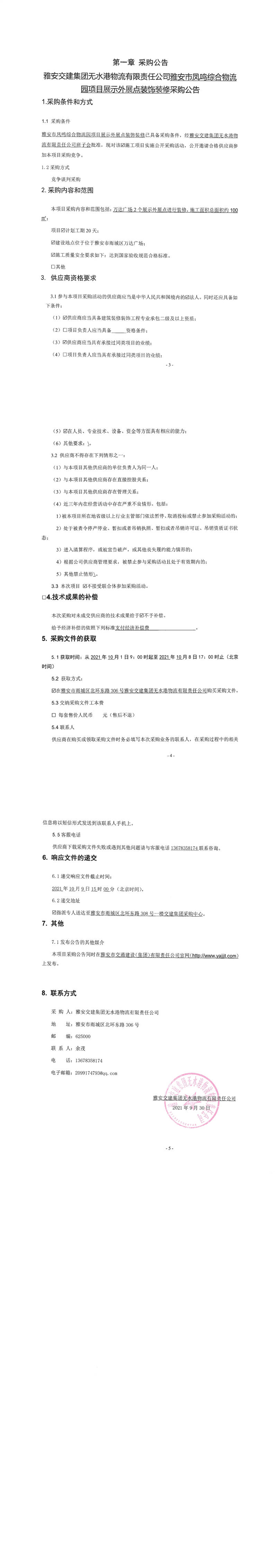 雅安交建集團(tuán)無水港物流有限責(zé)任公司雅安市鳳鳴綜合物流園項(xiàng)目展示外展點(diǎn)裝飾裝修采購(gòu)公告