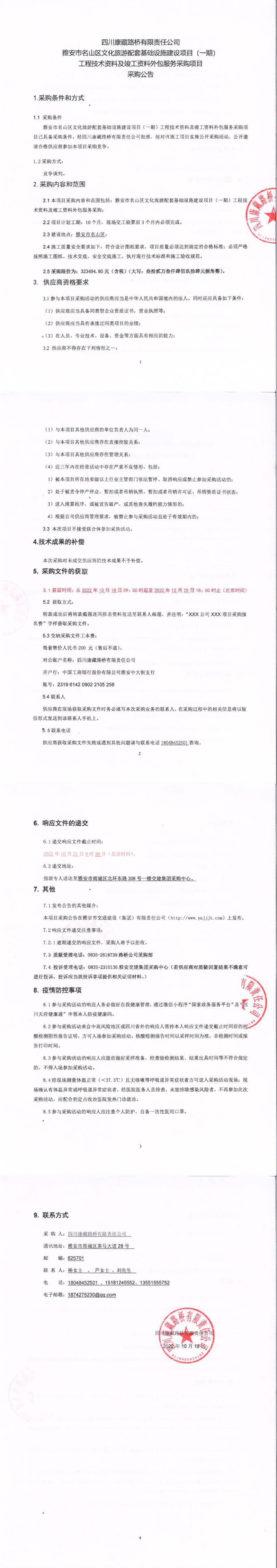 四川康藏路橋有限責(zé)任公司雅安市名山區(qū)文化旅游配套基礎(chǔ)設(shè)施建設(shè)項(xiàng)目(一期)工程技術(shù)資料及竣工資料外包服務(wù)采購項(xiàng)目采購公告