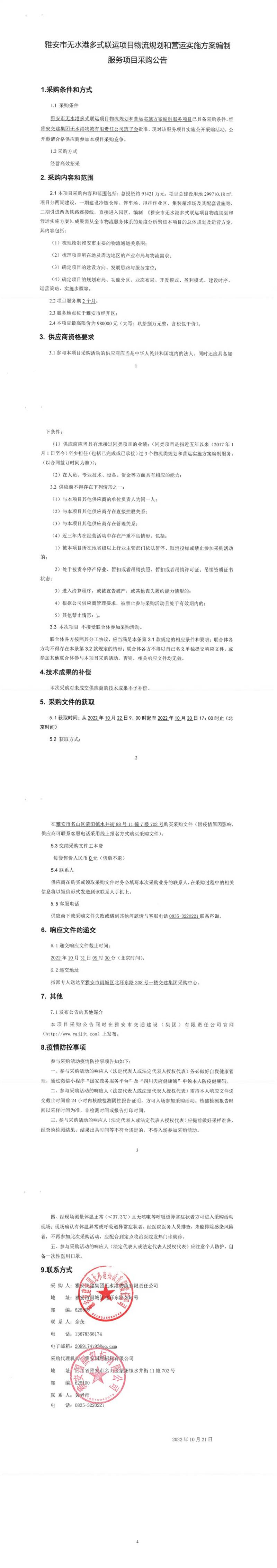 雅安交建集團(tuán)無水港物流有限責(zé)任公司雅安市無水港多式聯(lián)運(yùn)項(xiàng)目物流規(guī)劃和營(yíng)運(yùn)實(shí)施方案編制服務(wù)項(xiàng)目采購(gòu)公告