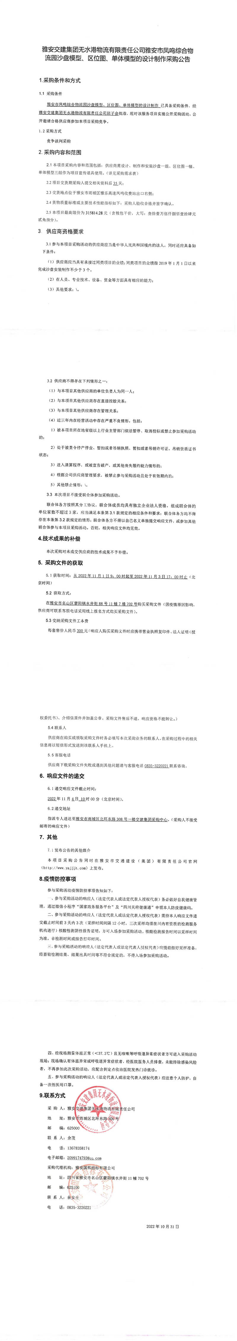 雅安交建集團(tuán)無(wú)水港物流有限責(zé)任公司雅安市鳳鳴綜合物流園沙盤(pán)模型、區(qū)位圖、單體模型的設(shè)計(jì)制作采購(gòu)公告