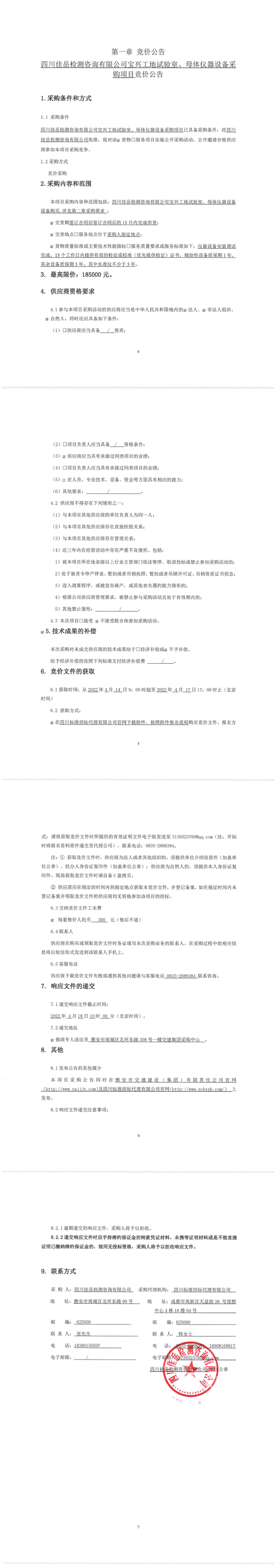 四川佳岳檢測(cè)咨詢有限公司寶興工地試驗(yàn)室、母體儀器設(shè)備采購(gòu)項(xiàng)目競(jìng)價(jià)公告