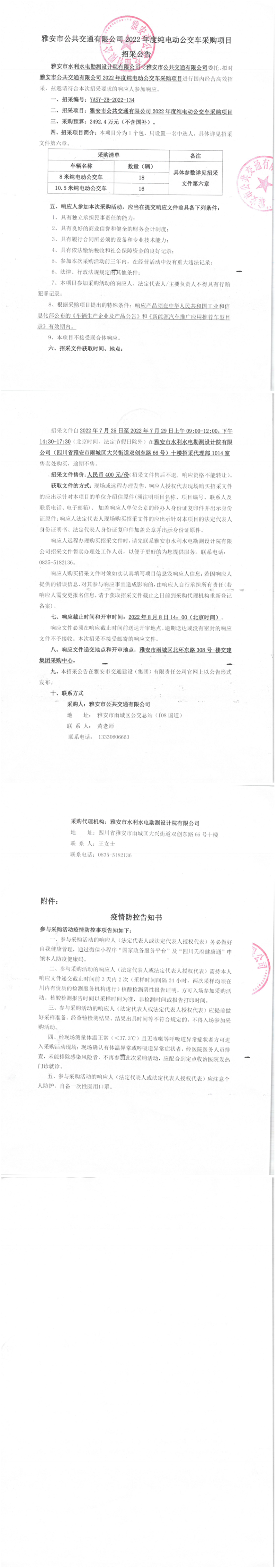 雅安市公共交通有限公司2022年度純電動公交車采購項目招采公告