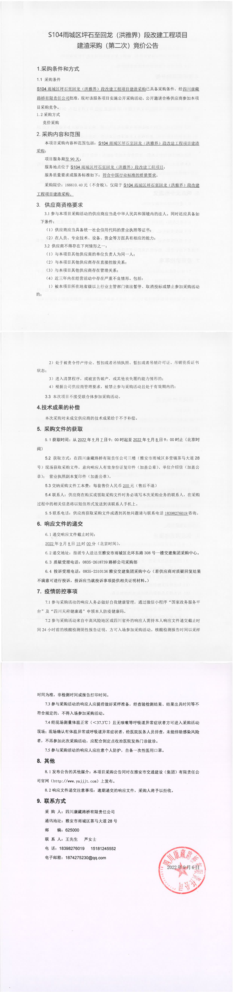 四川康藏路橋有限責(zé)任公司S104雨城區(qū)坪石至回龍(洪雅界)段改建工程項(xiàng)目建渣采購(第二次)競價公告