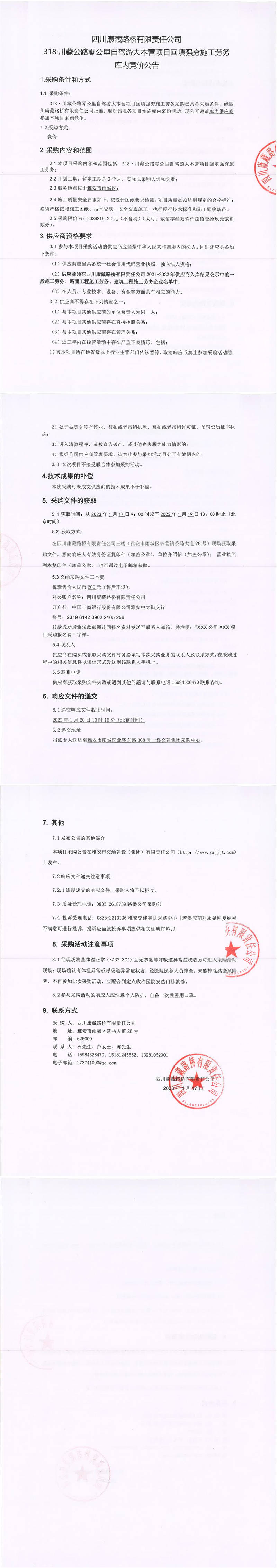 四川康藏路橋有限責(zé)任公司國(guó)道318名山區(qū)黑竹(成都界)至雨城區(qū)多營(yíng)段改建工程第一項(xiàng)目部進(jìn)場(chǎng)便道施工勞務(wù)采購(gòu)結(jié)果公示