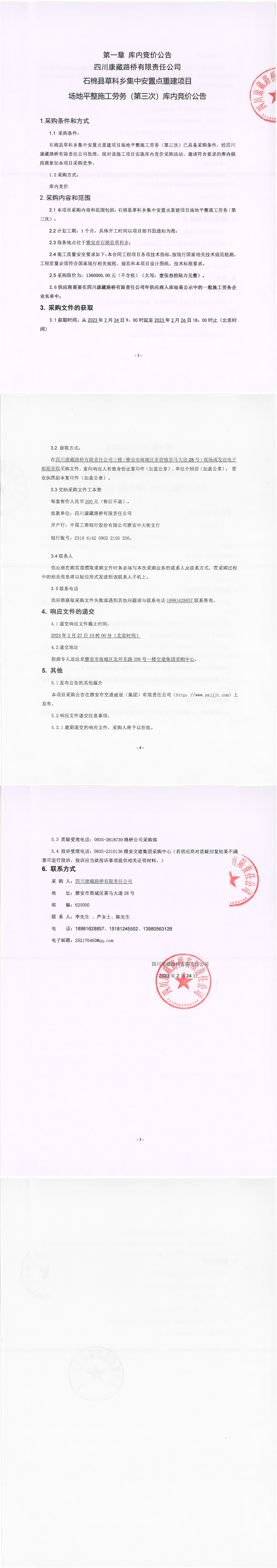 四川康藏路橋有限責(zé)任公司石棉縣草科鄉(xiāng)集中安置點(diǎn)重建項(xiàng)目場(chǎng)地平整施工勞務(wù)(第三次)庫(kù)內(nèi)競(jìng)價(jià)
