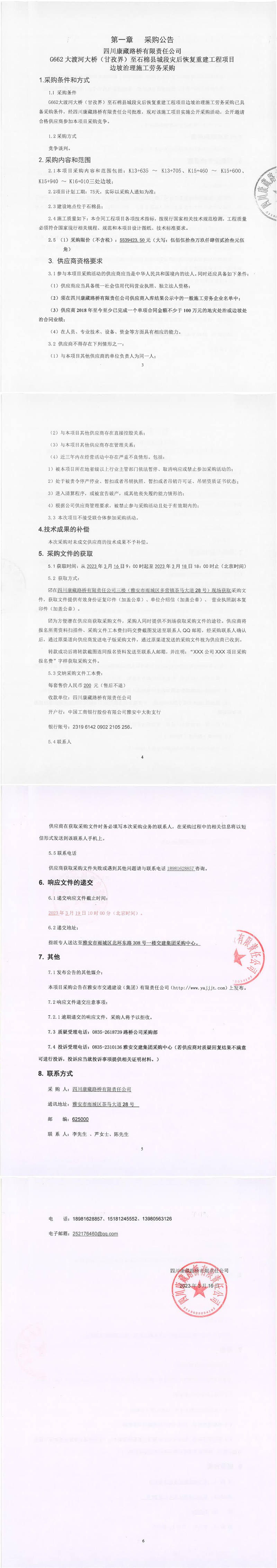 四川康藏路橋有限責(zé)任公司G662大渡河大橋(甘孜界)至石棉縣城段災(zāi)后恢復(fù)重建工程項(xiàng)目邊坡治理施工勞務(wù)采購(gòu)公告