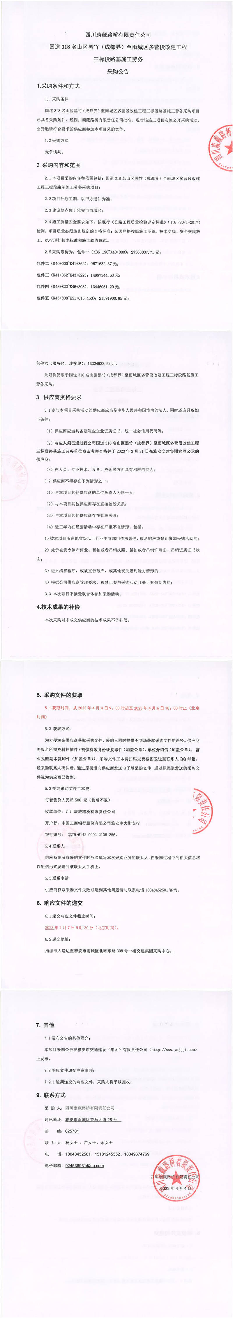 四川康藏路橋有限責任公司國道318名山區(qū)黑竹(成都界)至雨城區(qū)多營段改建工程三標段路基施工勞務(wù)采購公告