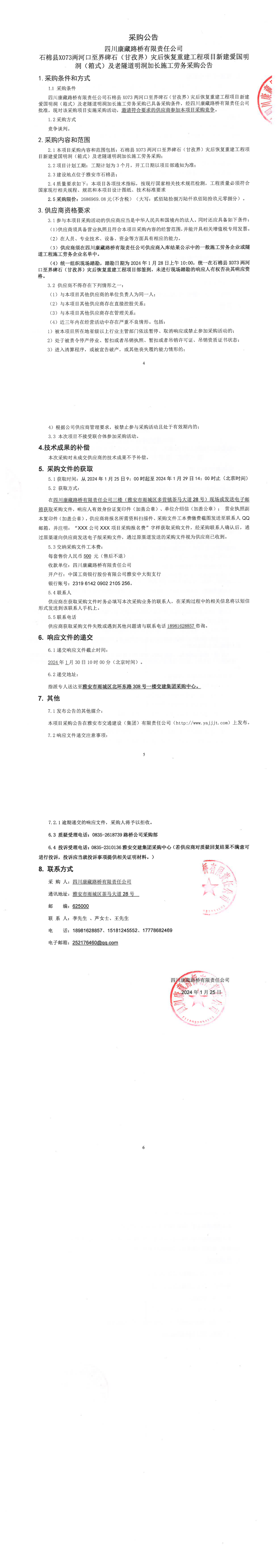 四川康藏路橋有限責(zé)任公司石棉縣X73兩河口至界碑石(甘孜界)災(zāi)后恢復(fù)重建工程項(xiàng)目新建愛國明洞(箱式)及老隧道明洞加長(zhǎng)施工勞務(wù)采購公告