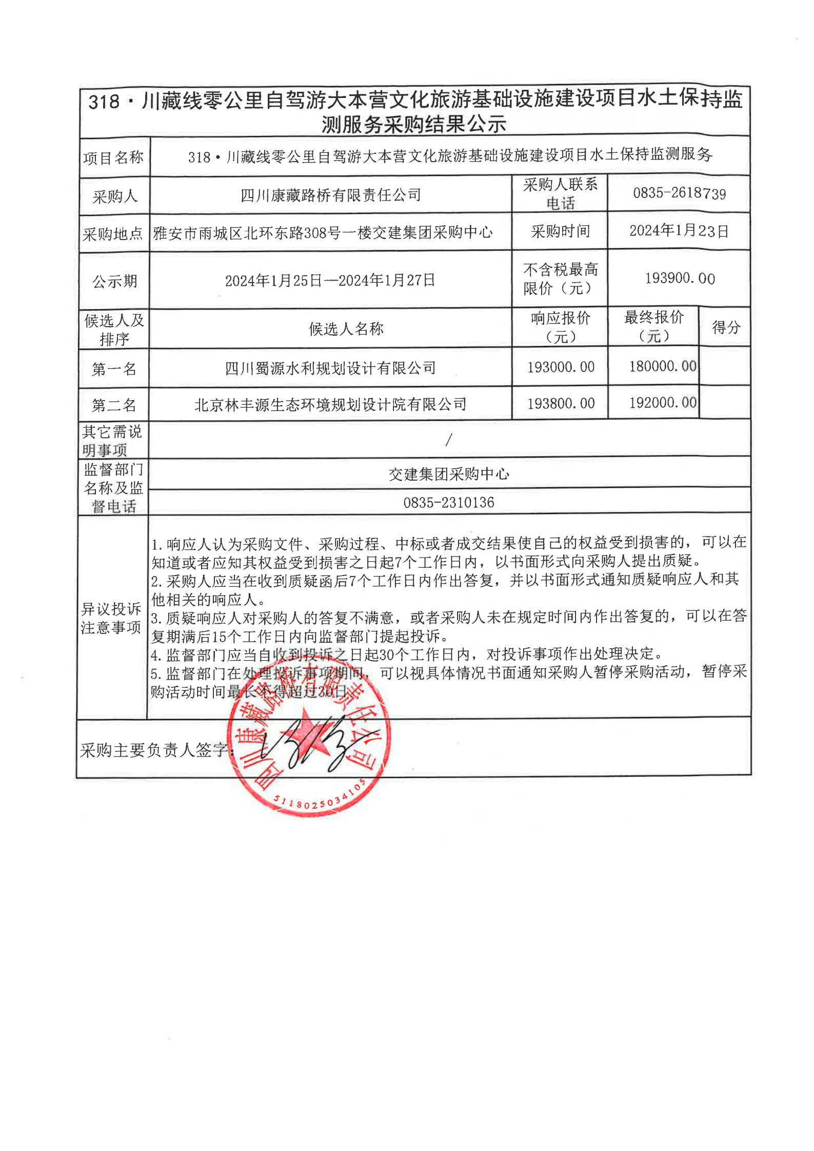 四川康藏路橋有限責(zé)任公司318·川藏線零公里自駕游大本營文化旅游基礎(chǔ)設(shè)施建設(shè)項目水土保持監(jiān)測服務(wù)采購結(jié)果公示