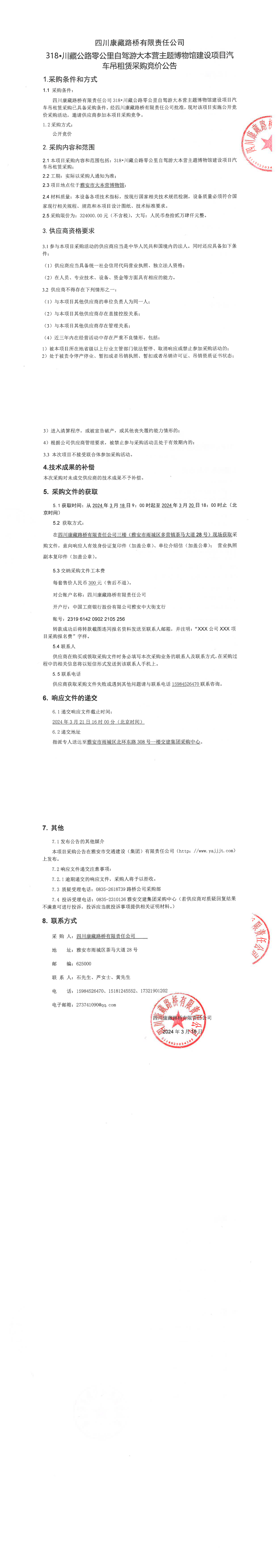 四川康藏路橋有限責(zé)任公司318·川藏公路零公里自駕游大本營文化旅游基礎(chǔ)設(shè)施建設(shè)項(xiàng)目文明環(huán)保設(shè)施、設(shè)備采購及安裝競(jìng)價(jià)公告