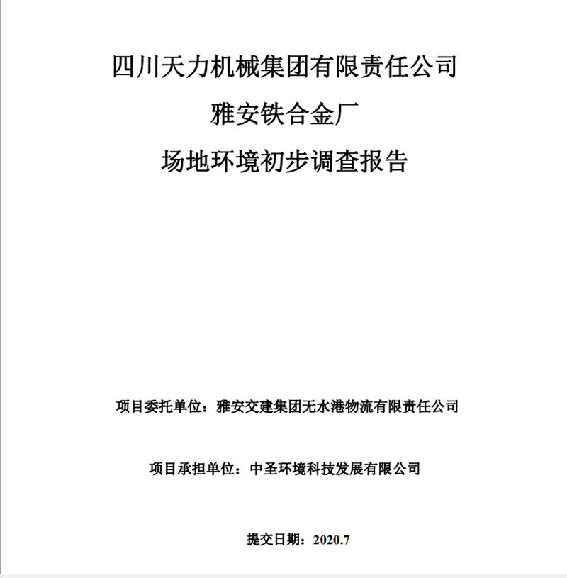 四川天力機械集團有限責任公司——雅安鐵合金廠場地環(huán)境初步調查報告