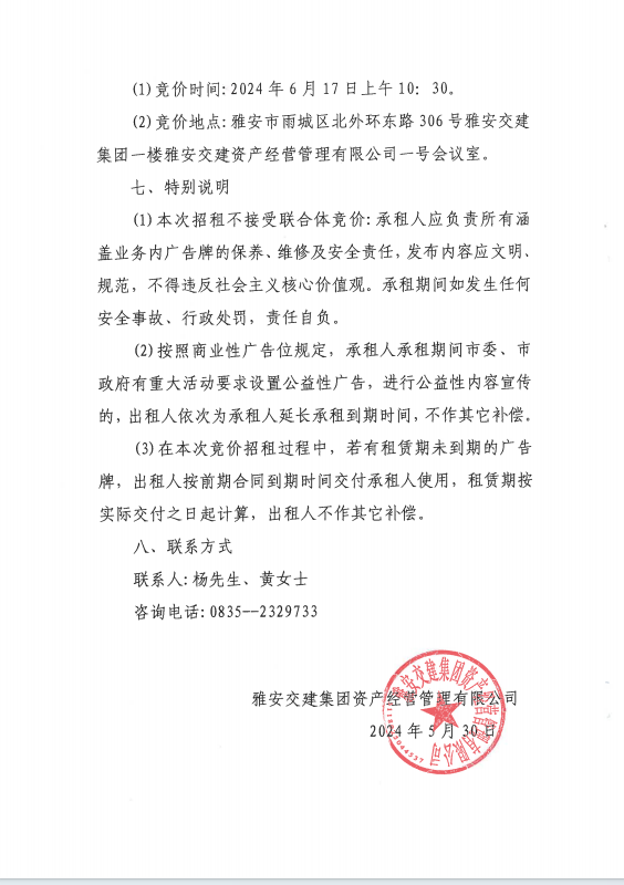 雅安交建集團(tuán)資產(chǎn)經(jīng)營管理有限公司關(guān)于戶外廣告位競價招租的公告附件