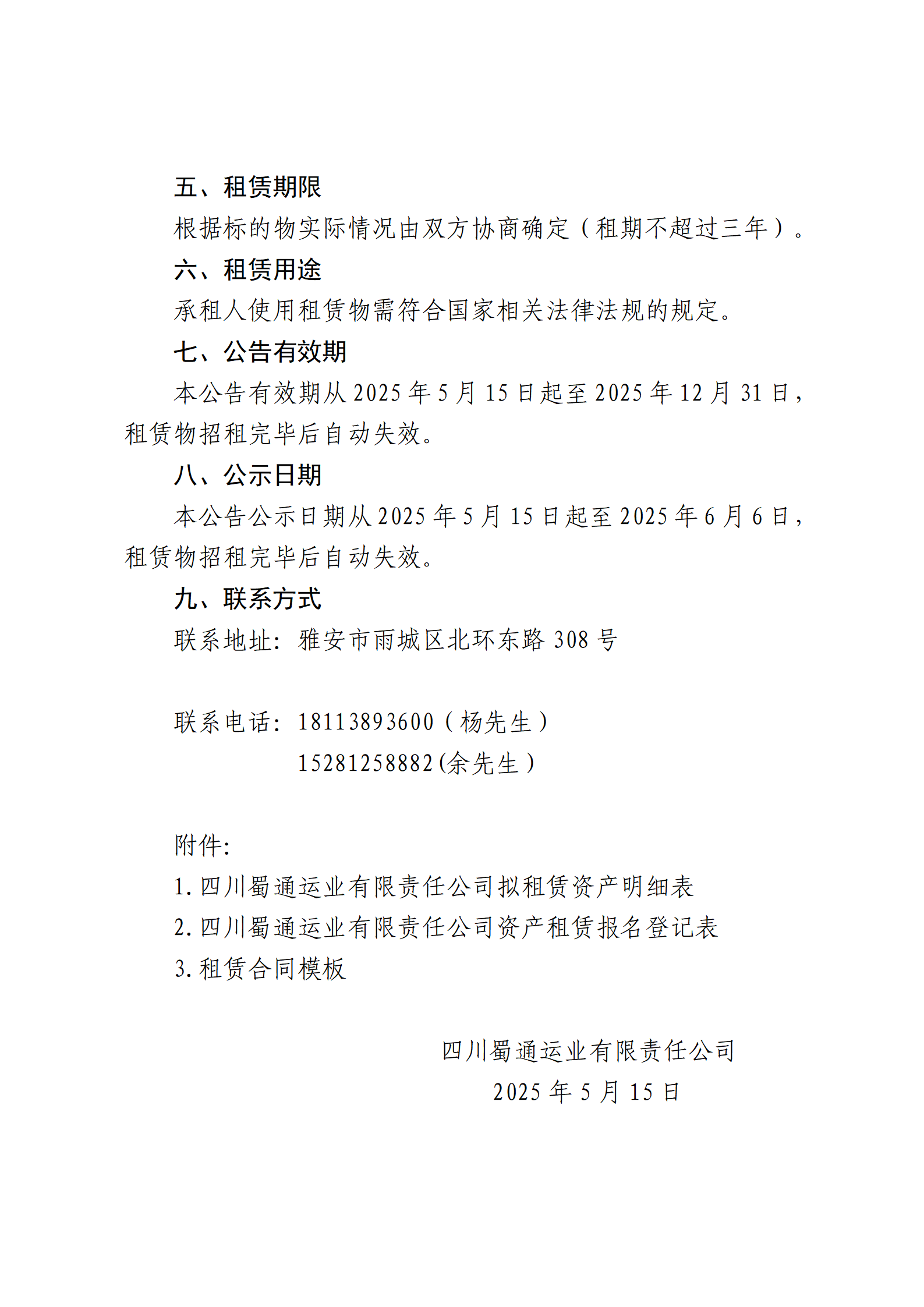 四川蜀通運(yùn)業(yè)有限責(zé)任公司 關(guān)于雅安市寶興縣四處商鋪資產(chǎn)進(jìn)行二次掛網(wǎng)招租的公告