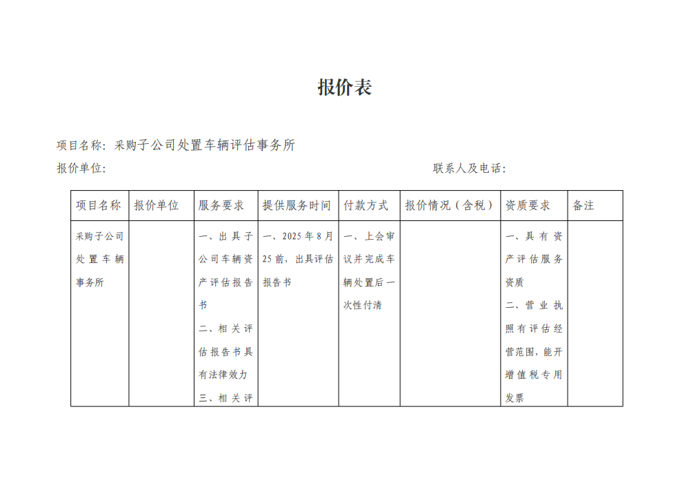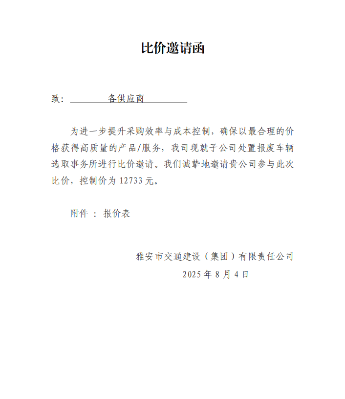 關于選取處置報廢車輛事務所的比價邀請函