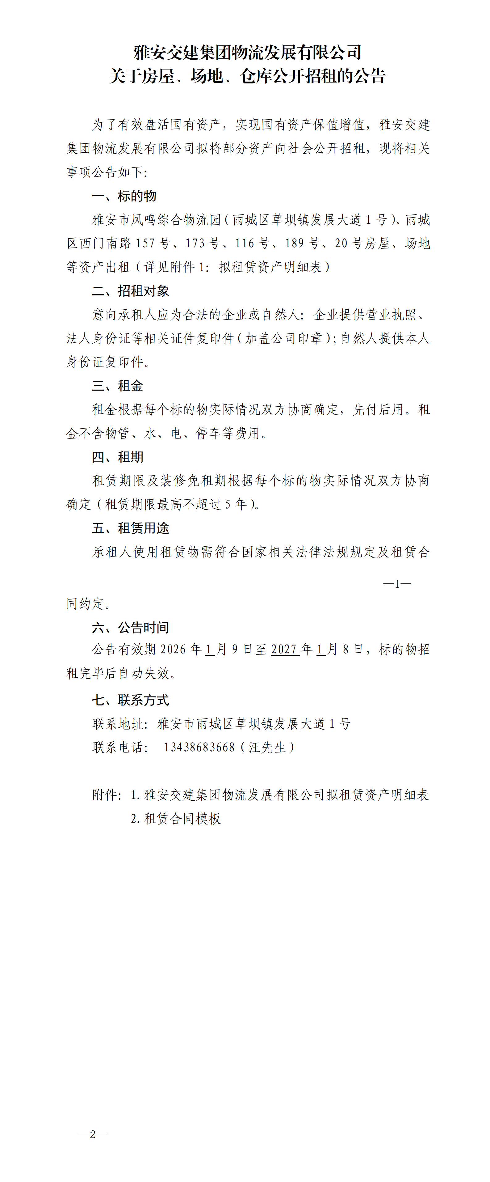 雅安交建集團(tuán)物流發(fā)展有限公司關(guān)于房屋、場(chǎng)地、倉(cāng)庫(kù)公開(kāi)招租的公告