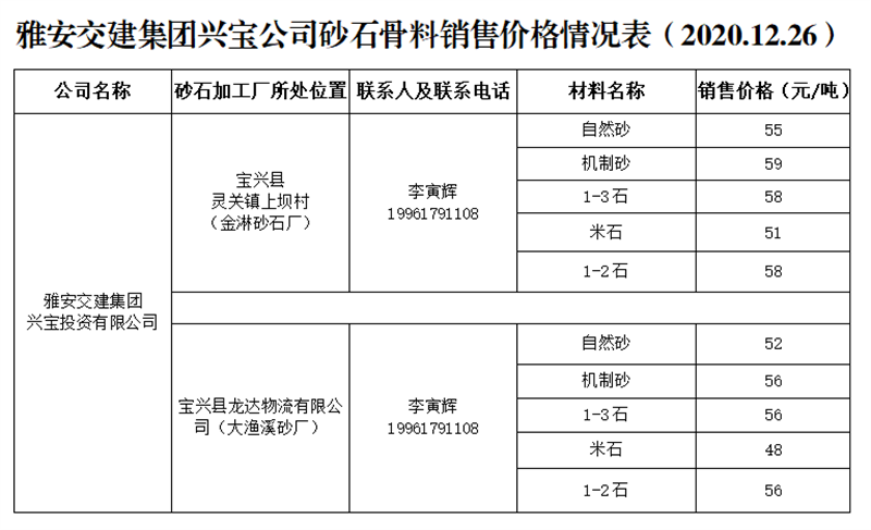 ÑŰ²½»½¨¼¯ˆF(tu¨¢n)ÅdŒš¹«Ë¾É°Ê¯¹ÇÁÏäNÊÛƒr(ji¨¤)¸ñÇé›r±í£¨2020.12.26£©
