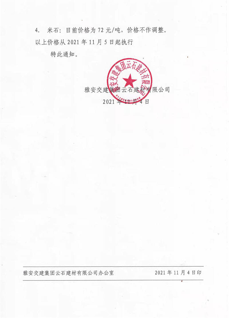 ÑŰ²½»½¨¼¯ˆF(tu¨¢n)ÅdŒš¹«Ë¾êP(gu¨¡n)ÓÚÕ{(di¨¤o)Õû³ÉÆ·ÁÏäNÊÛƒr¸ñµÄ֪ͨ£¨2021.11.2£©
