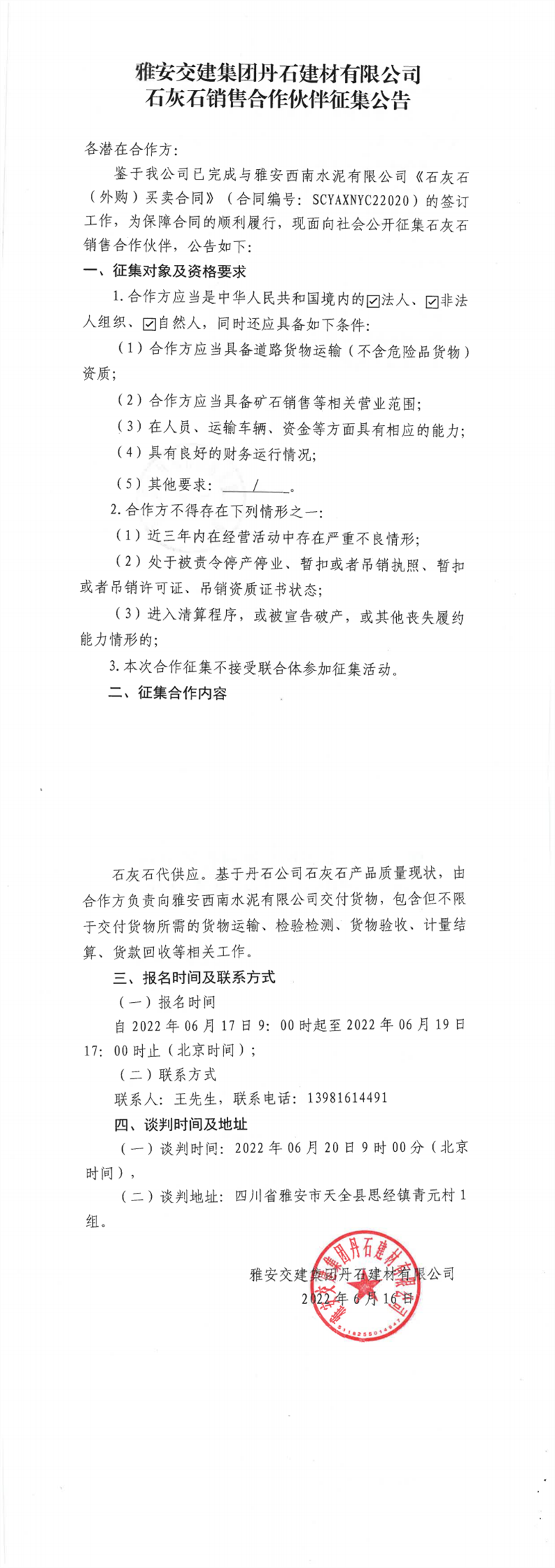 ÑŰ²½»½¨¼¯ˆF(tu¨¢n)µ¤Ê¯½¨²ÄÓÐÏÞ¹«Ë¾Ê¯»ÒʯäNÊÛºÏ×÷»ï°éÕ÷¼¯¹«¸æ6-16