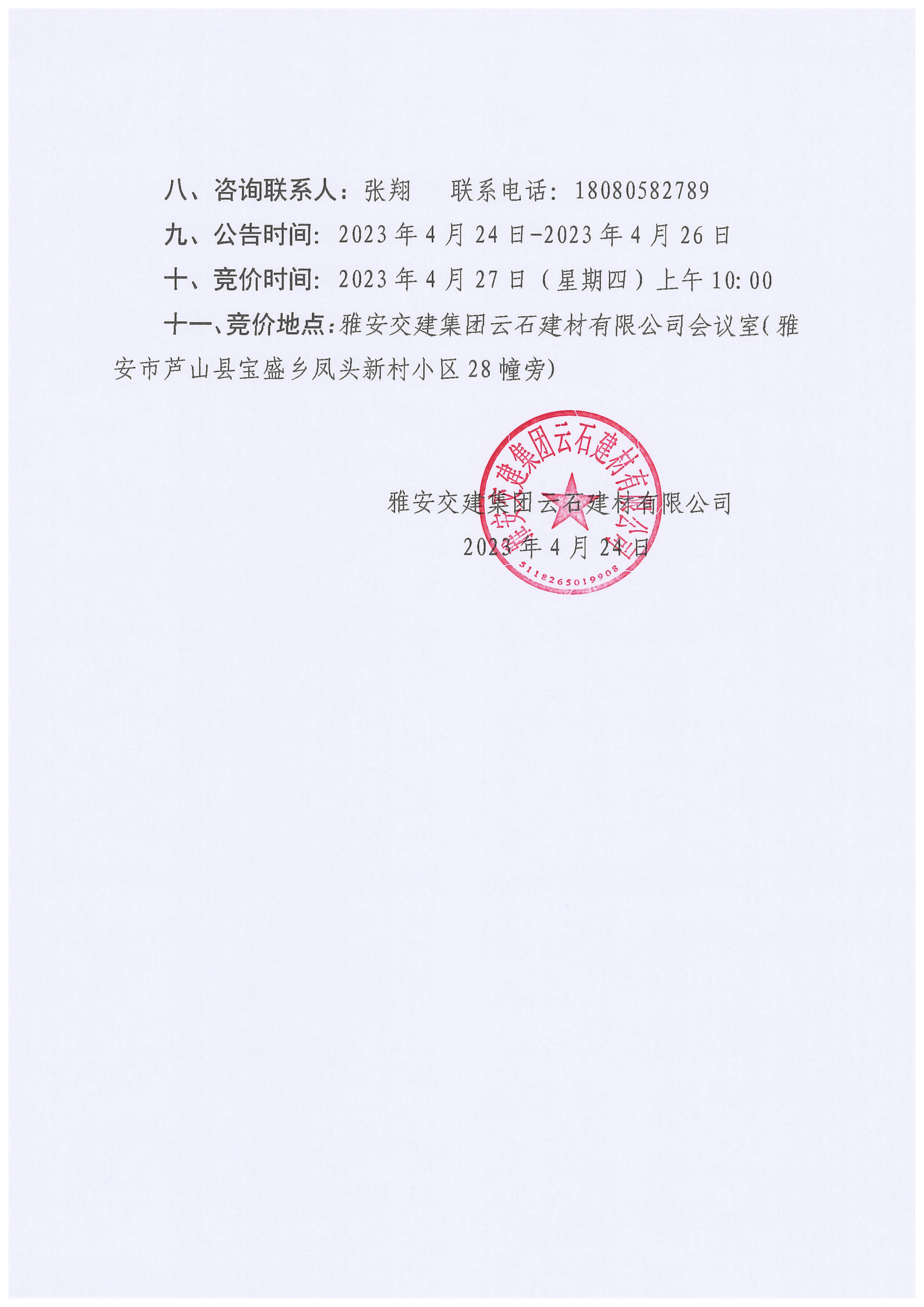 雅交建云石建材有限公司超規(guī)格石料競價(jià)銷售公告(2023-4-24)